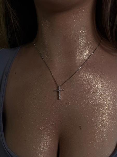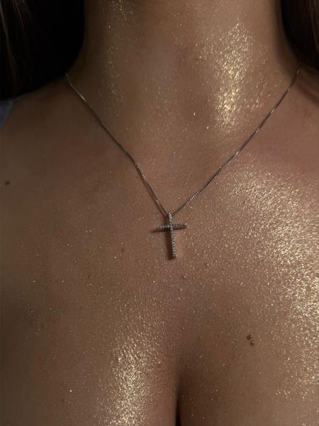 Colar delicado com pingente de cruz cravejada em zircônias, ideal para quem ama acessórios com significado e sofisticação.