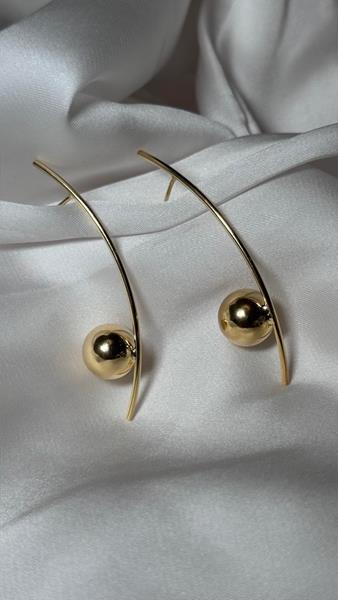 Um acessório cheio de presença e estilo!O Brinco Antagôro traz um design moderno e minimalista: hastes curvas delicadas contrastando com a força da esfera metálica, criando uma peça única e sofisticada.