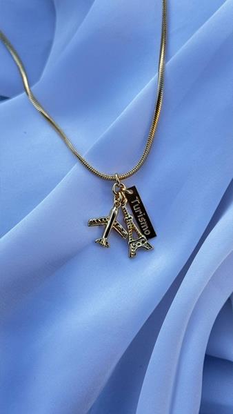 Com pingentes delicados de avião, Torre Eiffel e a plaquinha “Turismo”, essa peça é o toque de personalidade que transforma qualquer look.